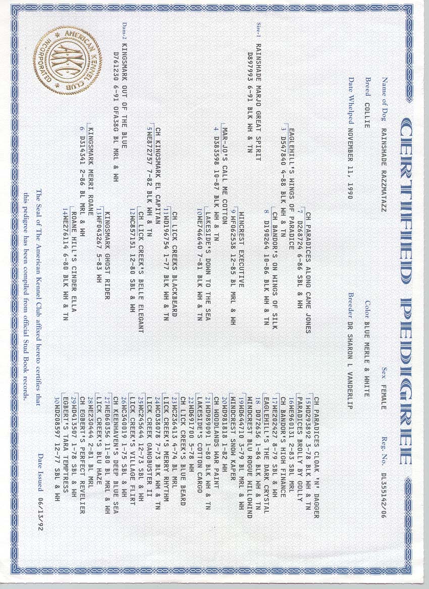 Rainshade Razzmatazz' pedigree.