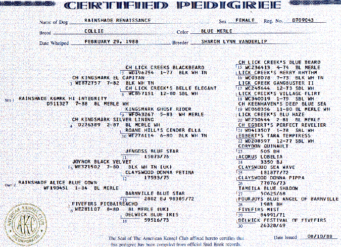 the pedigrees of his parents, Rainshade
